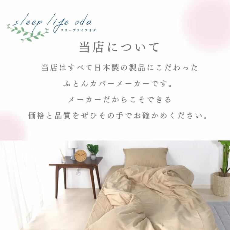 安心の日本製・綿100%生地を使用したお肌にやさしい敷ふとんカバーです。