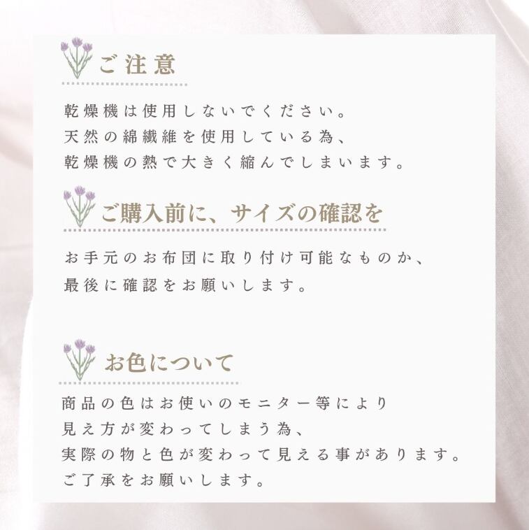 ・掛けふとんカバー:150㎝×210㎝ シングルロングサイズ