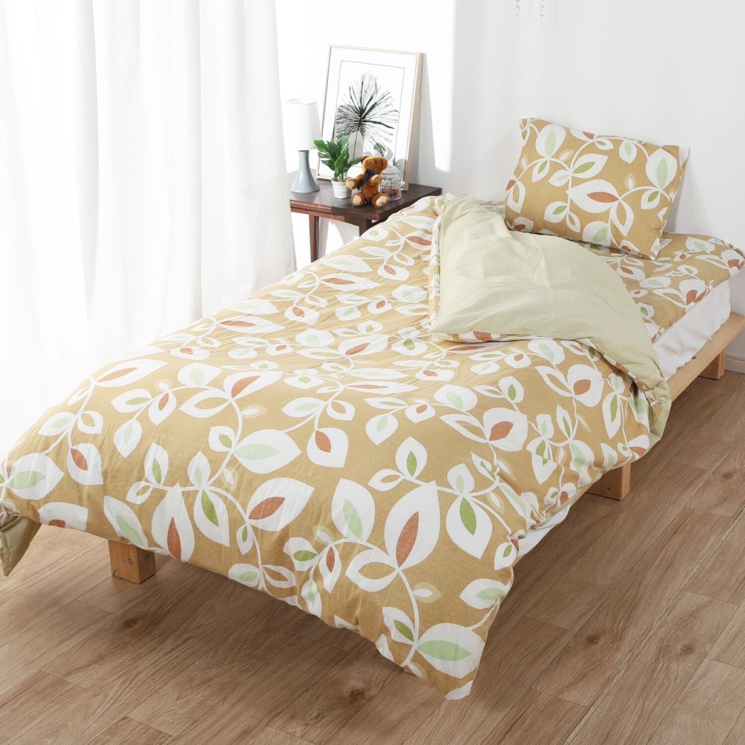 【セットでお得】ふとんカバー3点セット シングルロングサイズ(掛けふとんカバー+敷ふとんカバー+ピロケース)綿100% 日本製(3P874バジルイエロー)